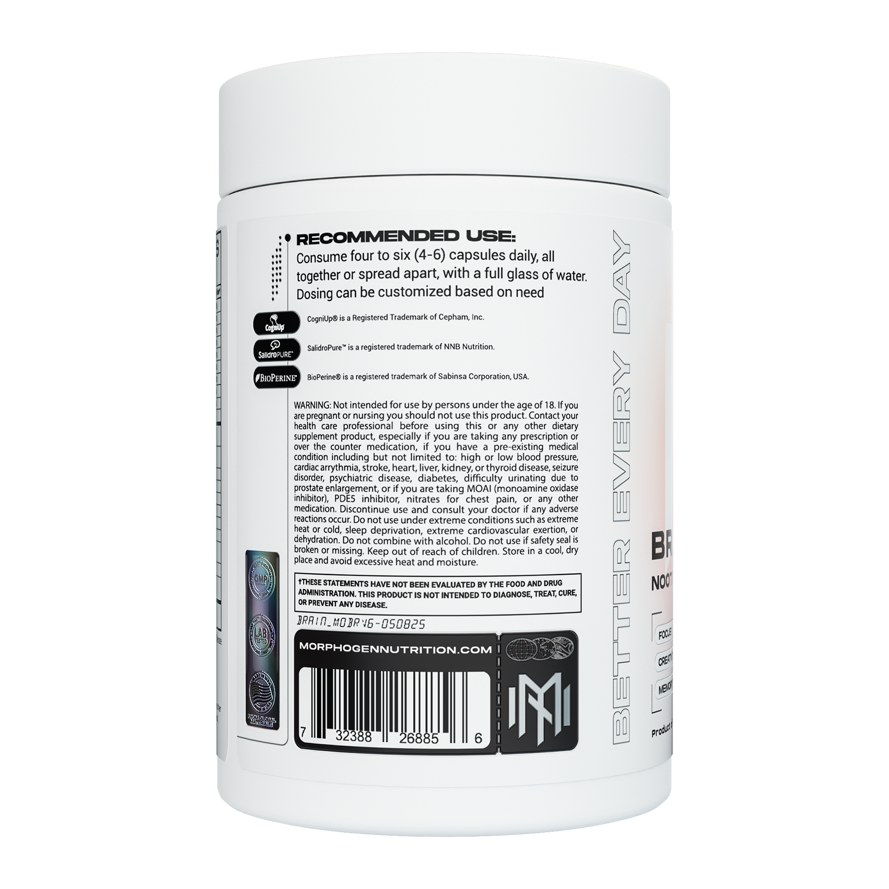 - Bacopa: Removed in favor of Gotu Kola and Salidroside, which provide similar memory/adaptogen effects but with broader neuroplasticity synergy.